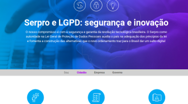 Imagem com parte da página inicial do portal LGPD do Serpro
