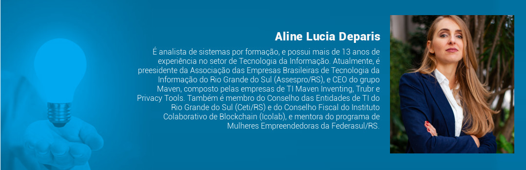 É analista de sistemas por formação, e possui mais de 13 anos de experiência no setor de Tecnologia da Informação. Atualmente, é preesidente da Associação das Empresas Brasileiras de Tecnologia da Informação do Rio Grande do Sul (Assespro/RS), e CEO do grupo Maven, composto pelas empresas de TI Maven Inventing, Trubr e Privacy Tools. Também é membro do Conselho das Entidades de TI do Rio Grande do Sul (Ceti/RS) e do Conselho Fiscal do Instituto Colaborativo de Blockchain (Icolab), e mentora do programa de Mulheres Empreendedoras da Federasul/RS.