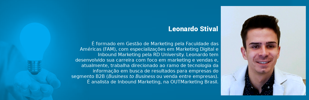 É formado em Gestão de Marketing pela Faculdade das Américas (Fam) e possui especialização em Marketing Digital pela Fundação Getúlio Vargas (FGV) e em Inbound Marketing pela RD University. Leonardo desenvolve sua carreira com foco em marketing e vendas, tendo acumulado experiência no segmento B2C (Business to Consumer ou venda para o consumo). Atualmente, trabalha direcionado ao ramo de tecnologia da informação com foco nos resultados para empresas do segmento B2B (Business to Business ou venda entre empresas)o. É analista de Inbound Marketing, na OUTMarketing Brasil.