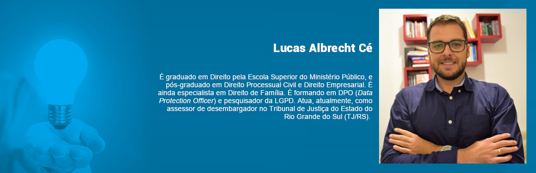 Box com o minicurrículo de Lucas Albrecht, especialista externo que contribuiu com o artigo relacionado à Lei Geral de Proteção de Dados Pessoais