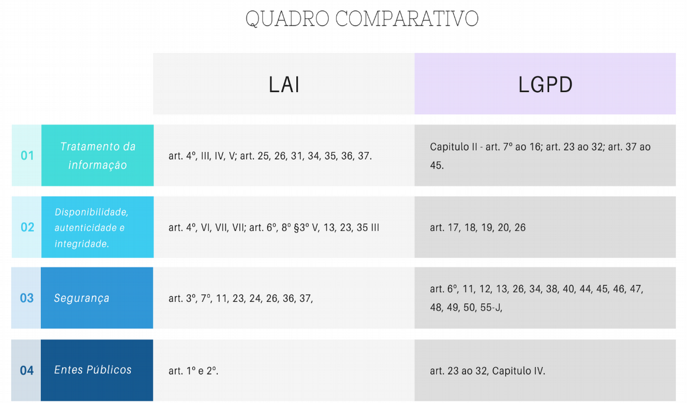 Comparação de artigos, entre LGPD e LAI