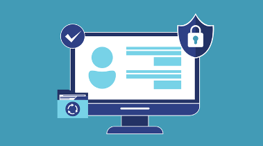 Ilustração com um computador e símbolos como cadeado, rosto de uma pessoa e outros que remetem à proteção de dados pessoais e à LGPD