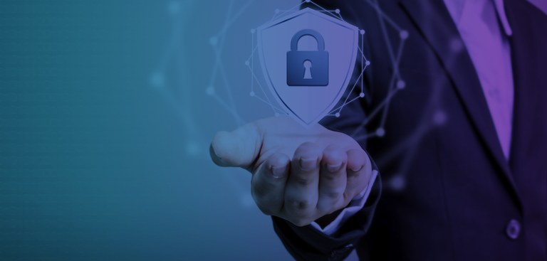 Fotografia de uma mão com a palma virada para cima. Sobre esta mão, encontra-se a ilustração de um cadeado que simboliza segurança