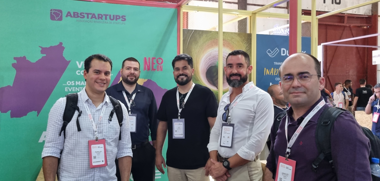 Foto com cinco profissionais do Serpro no evento South Summit Brazil