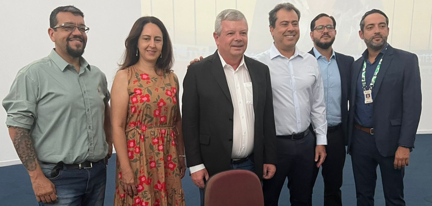 Axel Grael, prefeito de Niterói, em um registro fotográfico junto aos representantes do Serpro no Conlestech 2023